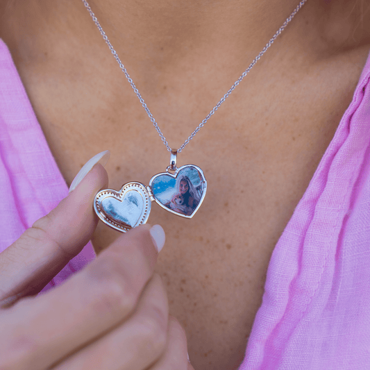 Personalizovaný náhrdelník se srdcovým medailonkem s gravírováním a vloženou fotografií – vlastní památeční šperk