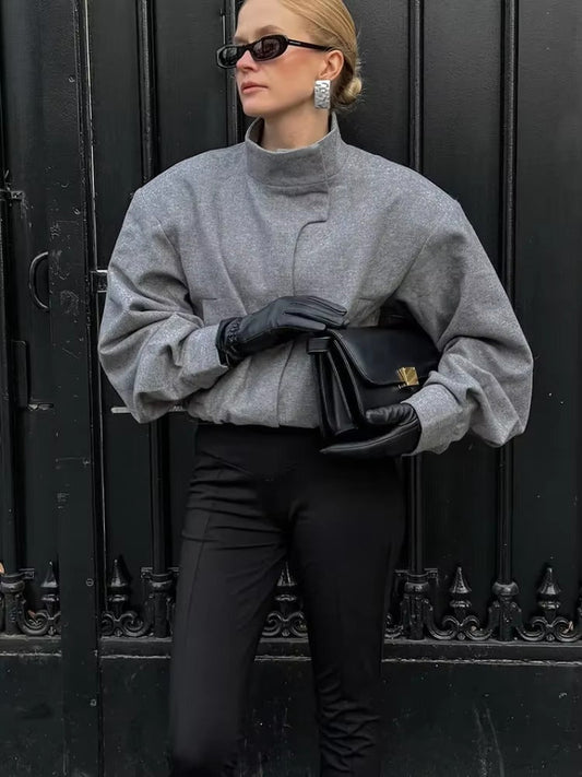 • Κοντό καμπαρντίνα για γυναίκες - Μοντέρνο σακάκι με μακριά μανίκια και φερμουάρ
